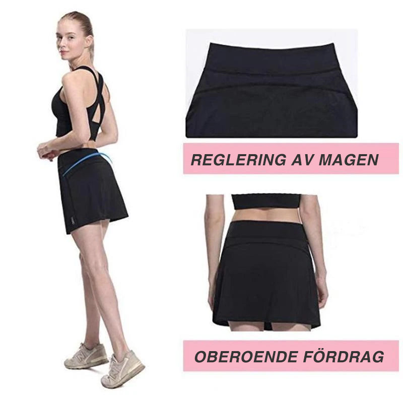 - Sijonas ir šortai viename! Elastingi ir patogūs šortai pritaikyti būtent sportui! Orui pralaidi medžiaga leidžia odai kvėpuoti, todėl išvengsite alerginių reakcijų bei šlaunų nutrynimo nuo susikaupusio prakaito. Jauskitės treniruočių metu komfortiškai!