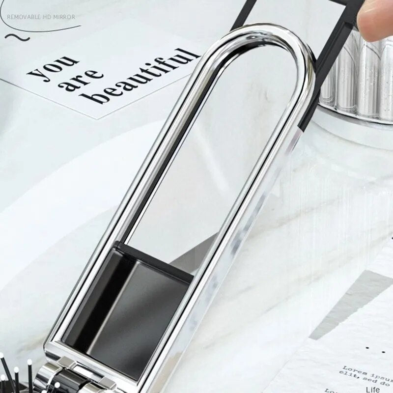 Ne visada norisi su savimi nešiotis didelę rankinę, tad kartais pasirenkame su savimi pasiimti ne visus reikalingus daiktus. Puikus sprendimas šiai problemai - sulankstomos mini šukos ir veidrodėlis viename! Taip sutaupysite vietos ir šias priemones visuomet turėsite po ranka!