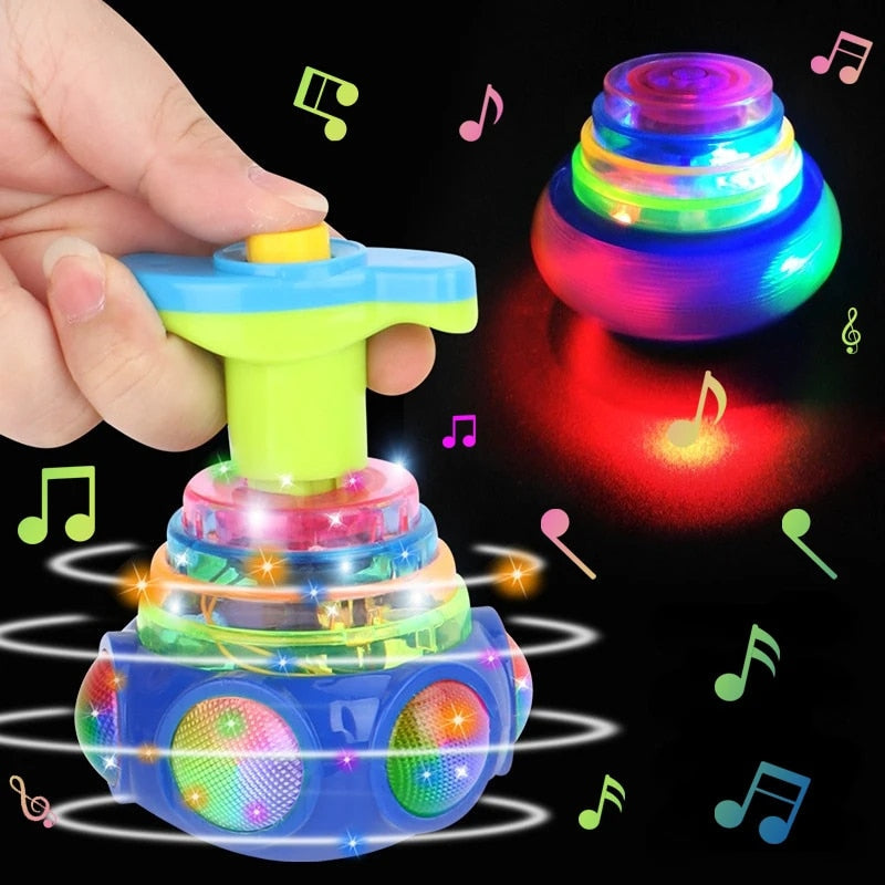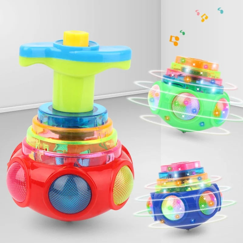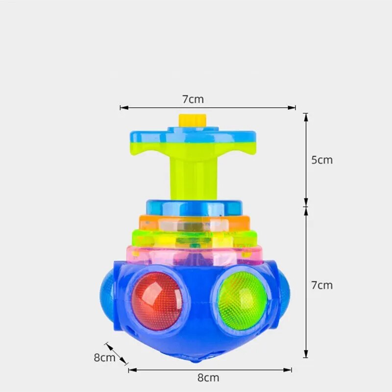 Muzika ir šviesos: Kai žaislas sukasi, jis automatiškai įsijungs ir pradės groti muziką bei mirgėti spalvingomis šviesomis.