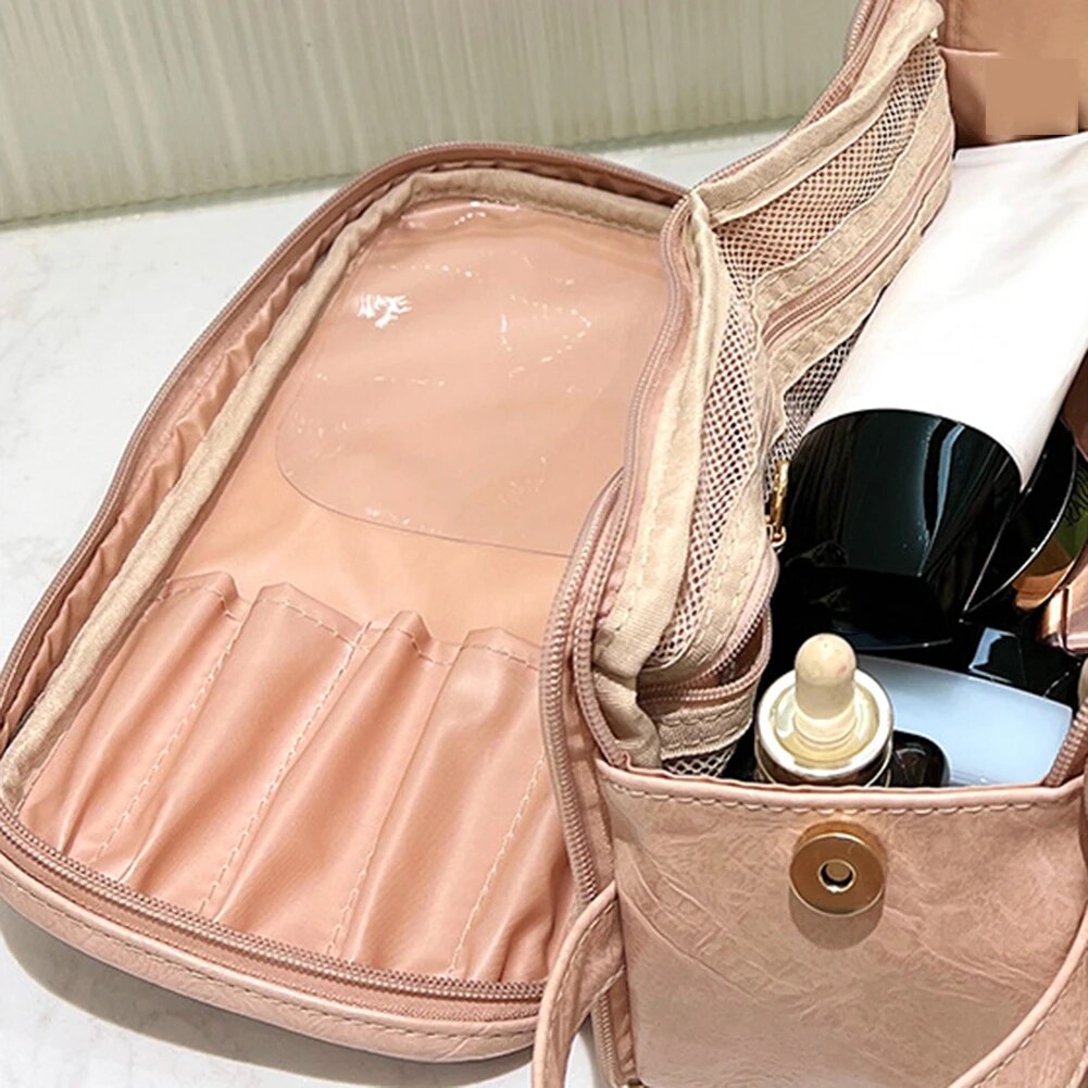 Mūsų talpi kosmetinė yra puikus pasirinkimas keliaujant ar norint tvarkingai susidėti kosmetiką namuose, dėka jos didelės talpos, vandeniui atsparios medžiagos ir patogios vidinės struktūros.
