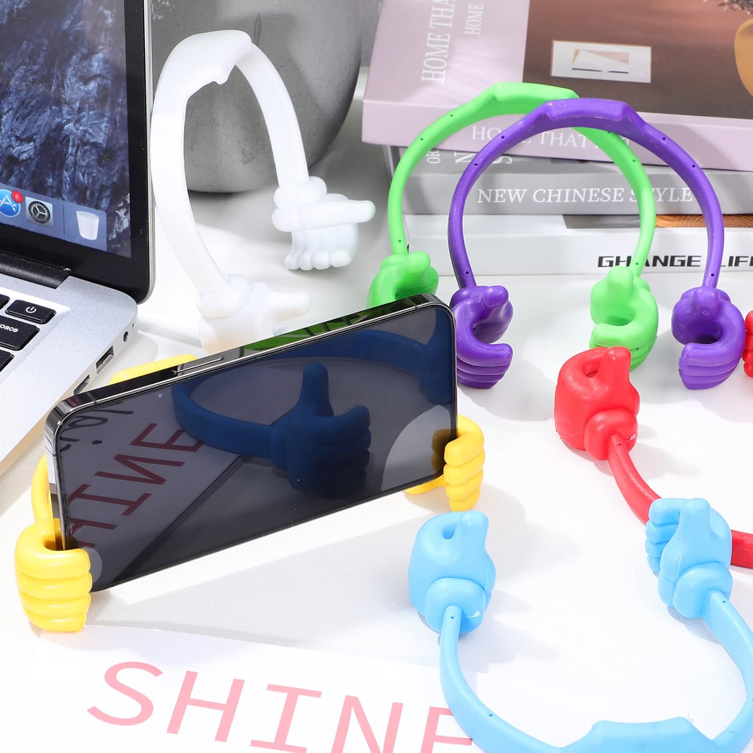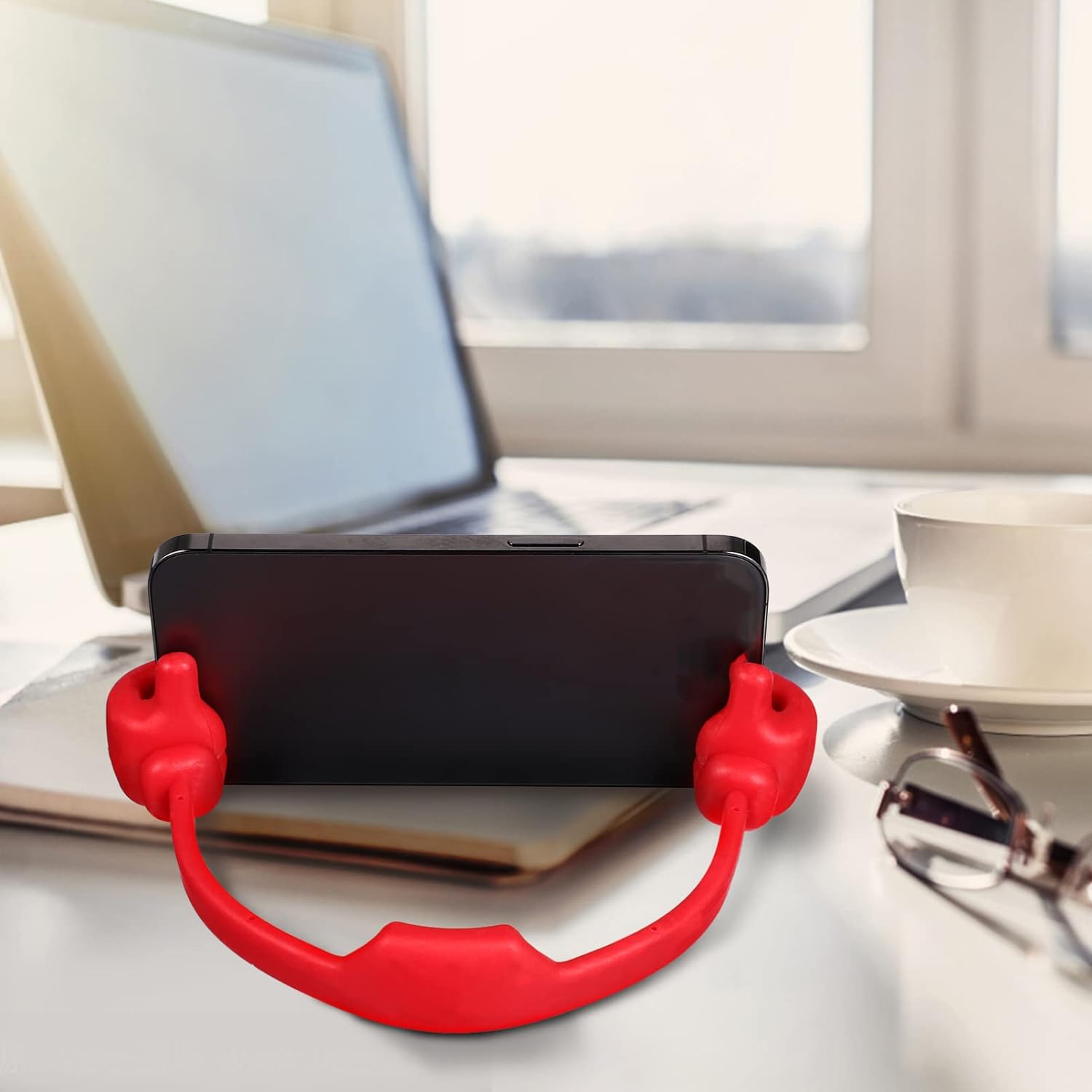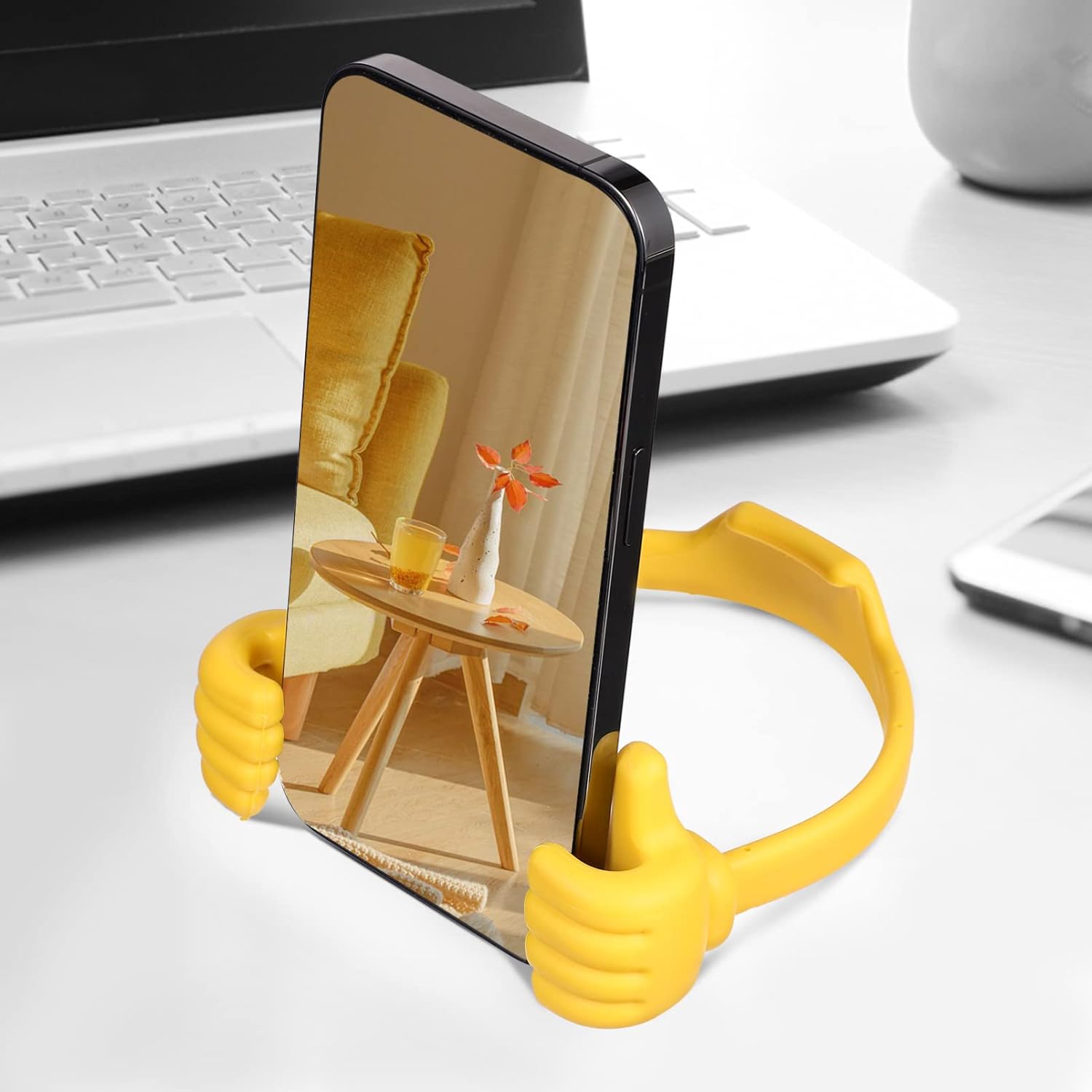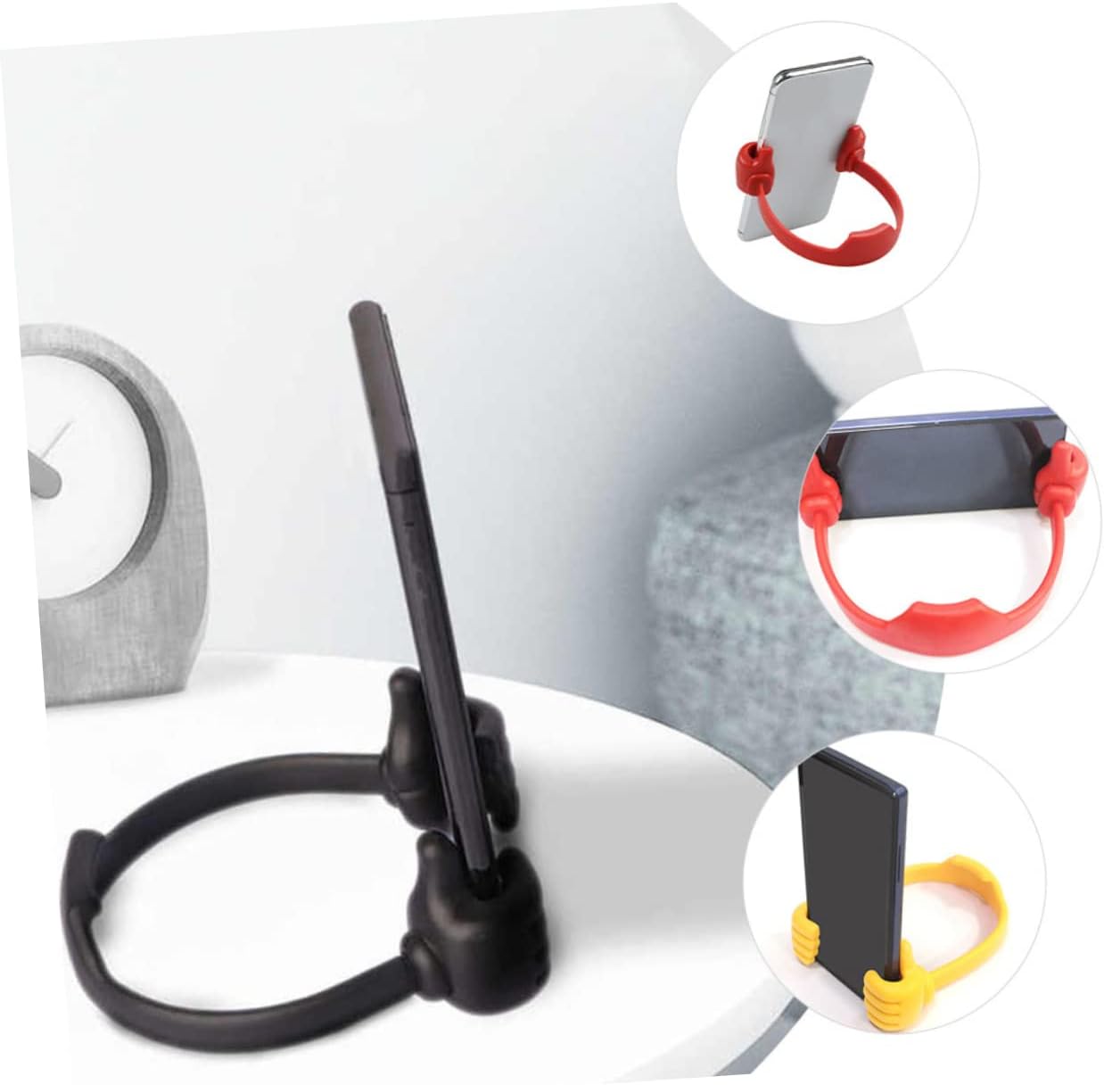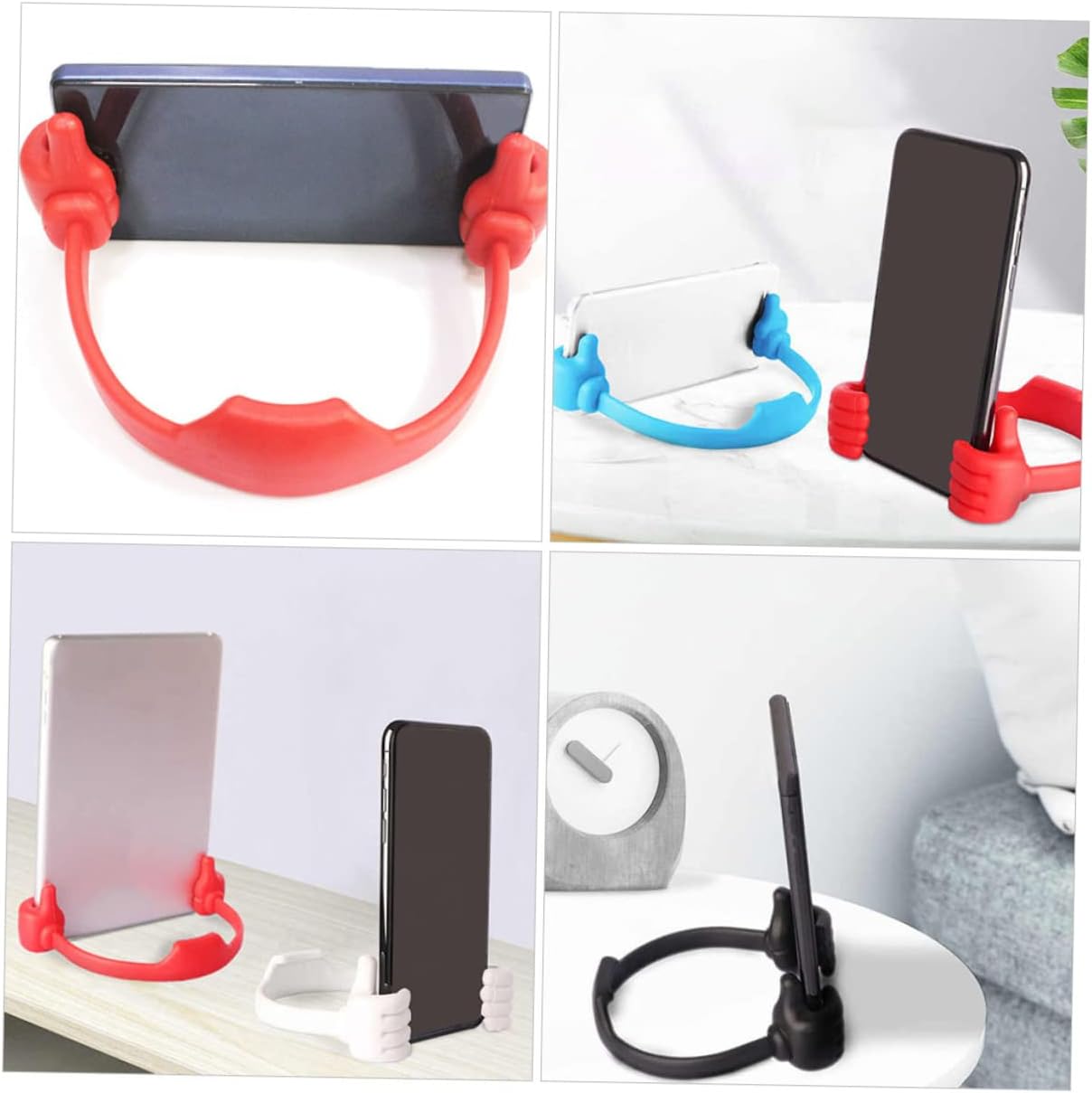 Unikalus iškeltų nykščių formos mobiliųjų telefonų, planšečių ir elektroninių skaityklų laikiklis, kuris suteikia galimybę patogiai naudotis įrenginiais. Tinkamas įvairiems modeliams, lengvai prisitaiko prie Jūsų poreikių, suteikdamas galimybę reguliuoti vaizdo kampą ir pasižymintis lengvumu bei patvarumu.