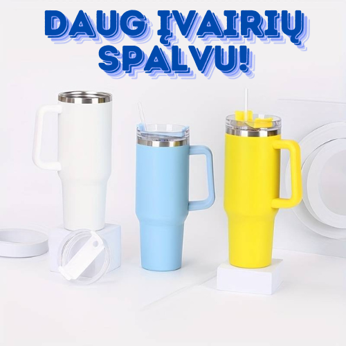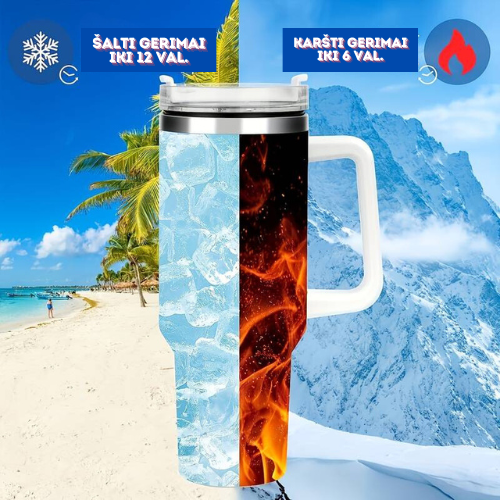 - Dvigubos sienelės vakuuminė izoliacija: puodelis pagamintas iš aukštos kokybės nerūdijančio plieno, kuris palaiko karštus gėrimus iki 12 valandų, o šaltus – net iki 24 valandų. 🔥❄️