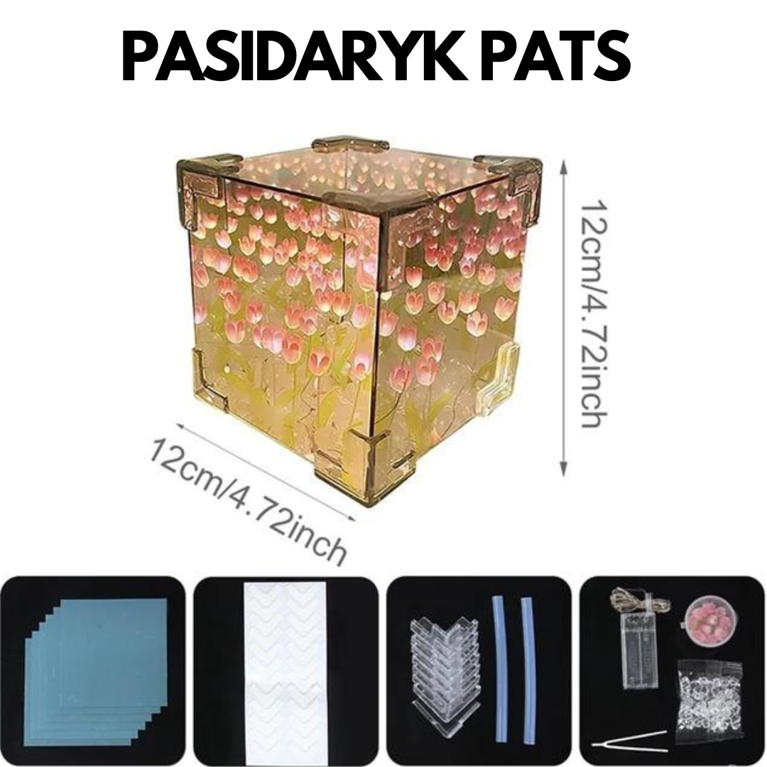 Suteikite savo namams unikalumo ir sukurkite tulpių šviečiančią dėžutę savo rankomis. Pajuskite kūrybos džiaugsmą ir mėgaukitės magišku rezultatu! 🌷✨