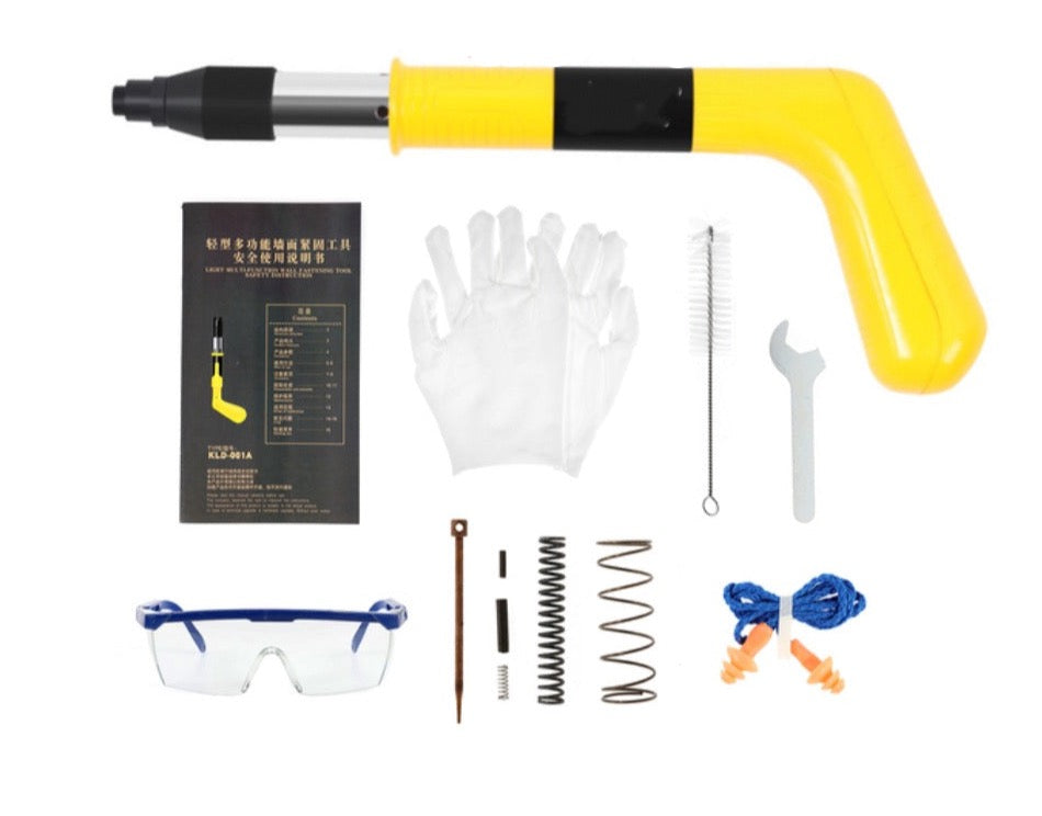 Komplektacija: pistoletas, 200 vnt. kniedžių, valymo šepetėlis, spiralė, atsuktuvas, ausų kištukai, apsauginės pirštinės ir akiniai.