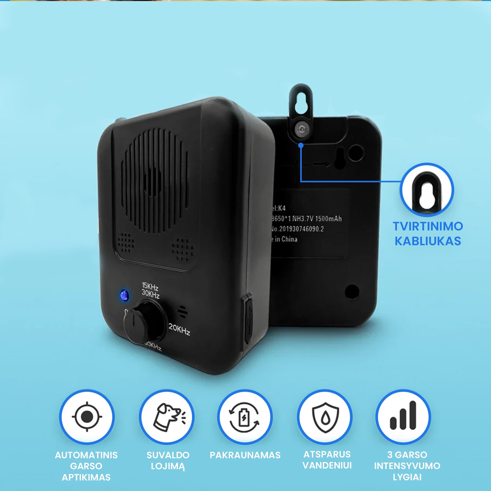 - Ultragarsinis prietaisas nuo šunų lojimo;