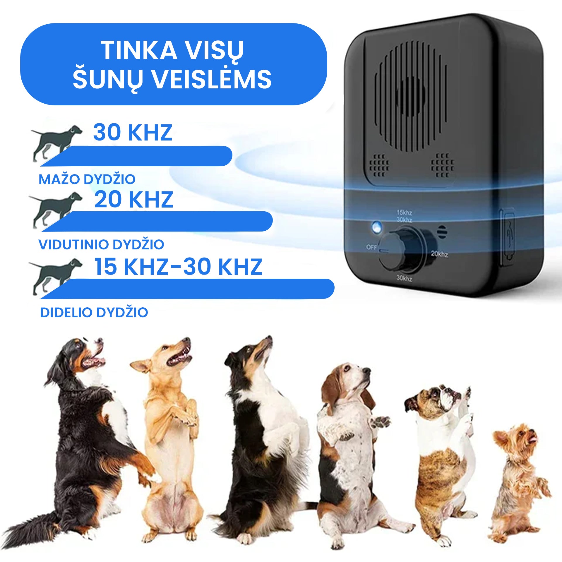 - Ultragarso prietaisas yra 100 % saugus šunims. Tai garsinė atgrasymo priemonė, kurią naudoja profesionalios šunų dresyklos siekiant, jog šuo būtų paklusnus ir išmoktų valdyti lojimą.