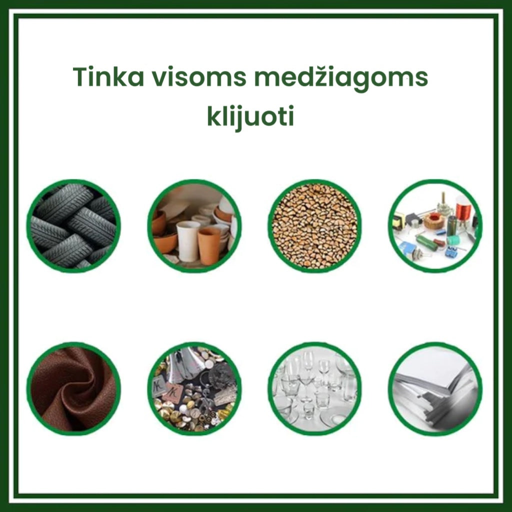 Jie puikiai tinka VISIEMS PAVIRŠIAMS. pavyzdžiui. metalui. stiklui. gumai. keramikai. porcelianui. medienai. plastikui. odai. popieriui. akmens pluoštui ir net kietai rūgščiai medienai. Klijais paprasta naudotis ir juos tikrai PRIVALOMA turėti savo 'pasidaryk pats' įrankių rinkinyje.