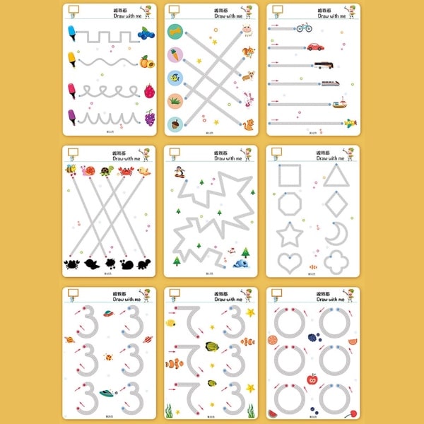 - Užduotyse pateikiamos tokios užduotys kaip loginis objektų sujungimas. taškų sujungimas. sekimas sunumeruotomis linijomis ir kt.