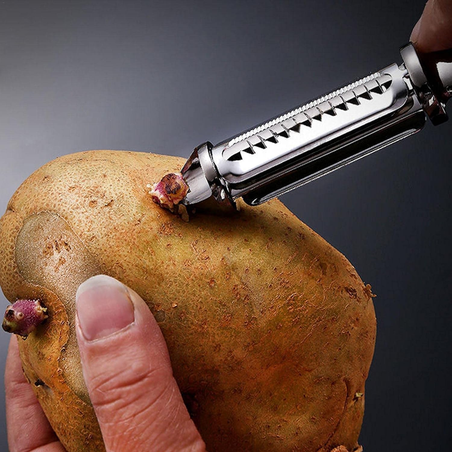 Šis daugiafunkcinis skustukas yra būtinas kiekvienoje virtuvėje! Su jo pagalba lengvai nulupsite ir supjaustysite daržoves, o aukštos kokybės nerūdijančio plieno ašmenys užtikrins ilgalaikį naudojimą ir patogumą.