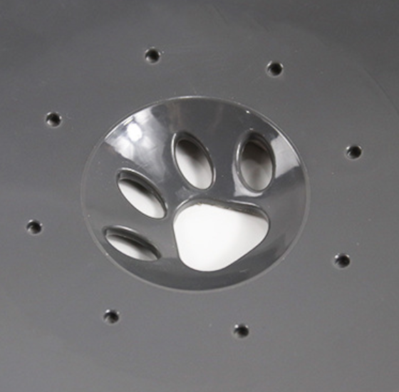 Šis dubenėlis turi plokštes ir vandens pertekliaus skyles, kurios puikiai apsaugo gyvūnų burnas nuo drėgmės ir seilių.
