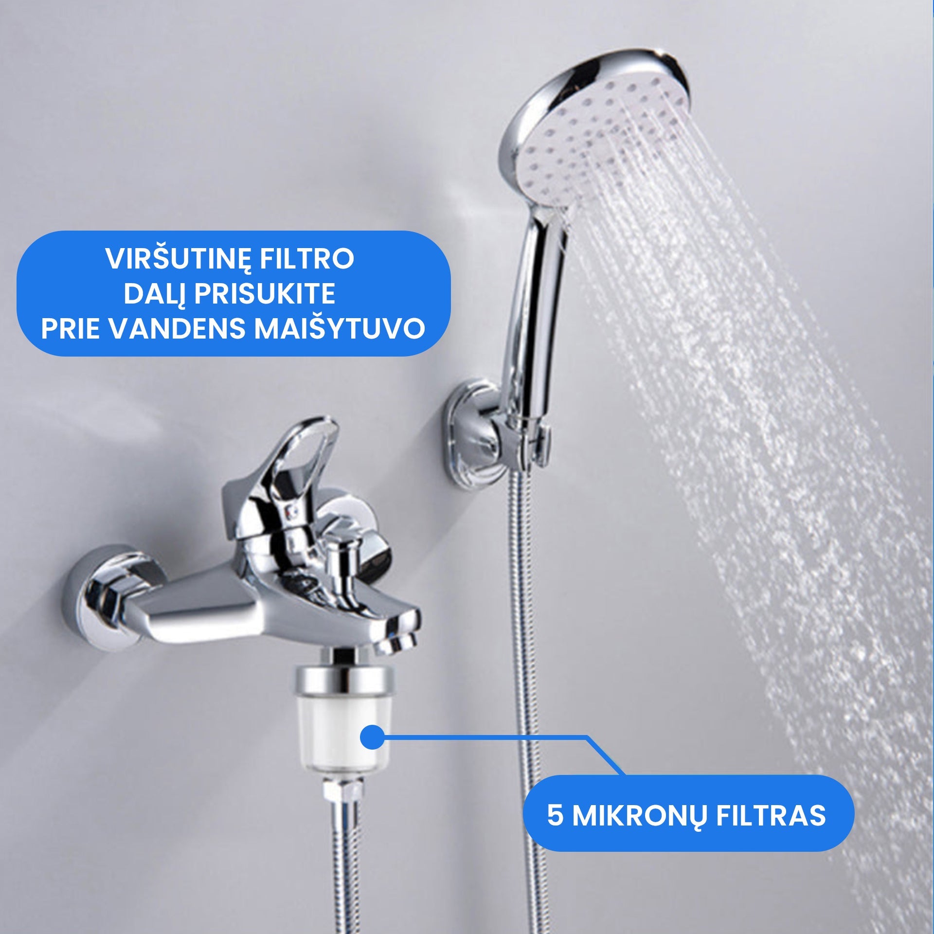 - Universalus ir paprastas montavimas. Pamirškite sudėtingus filtrų montavimus! Šis vandens filtras puikiai tinka vonios čiaupams ir dušo galvutėms naudoti. RInkinyje pateikta montavimo instrukcija leis įmontuoti filtrą vos per kelias minutes!