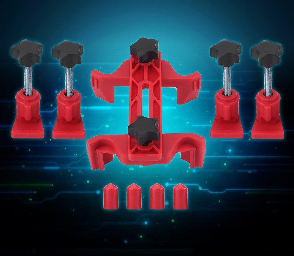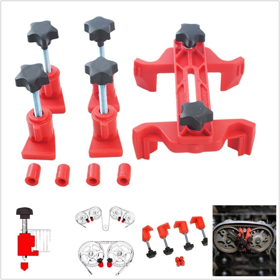 Rinkinyje yra dvigubas kumštelio spaustukas ir 4 pavieniai kumštelio spaustukai, skirti naudoti dvigubo arba keturgubo viršutinio kumštelio varikliuose. Įrankio galimybė atskirai užfiksuoti pavaras išsprendžia kelių pavarų valdymo vienu metu komplikacijas.