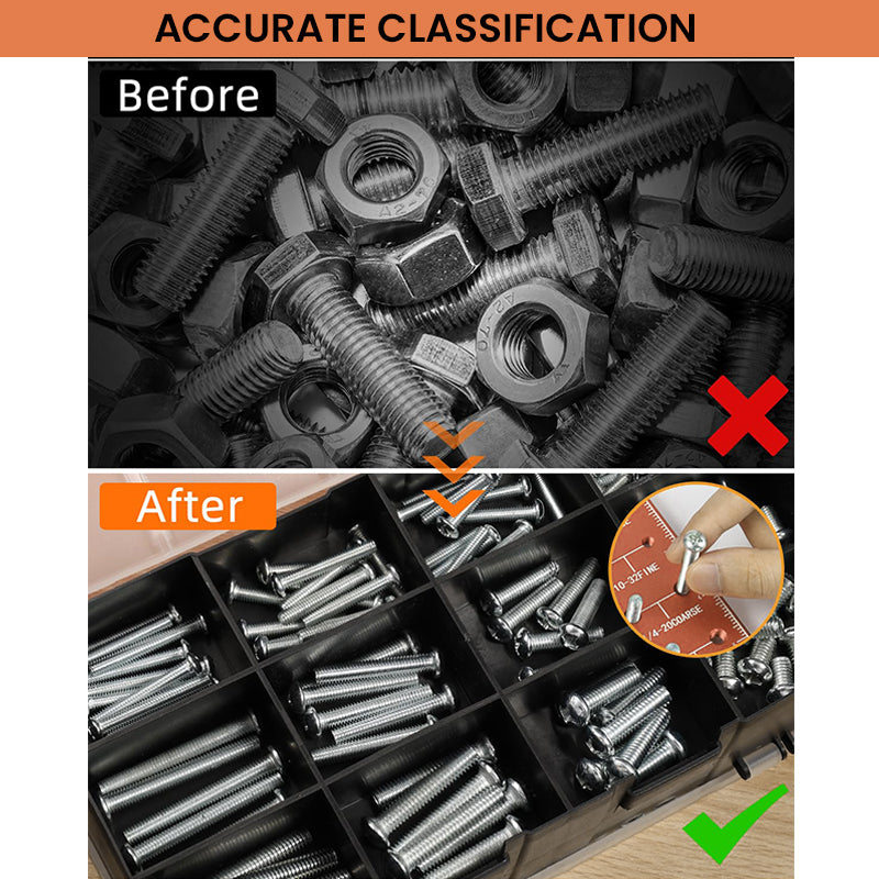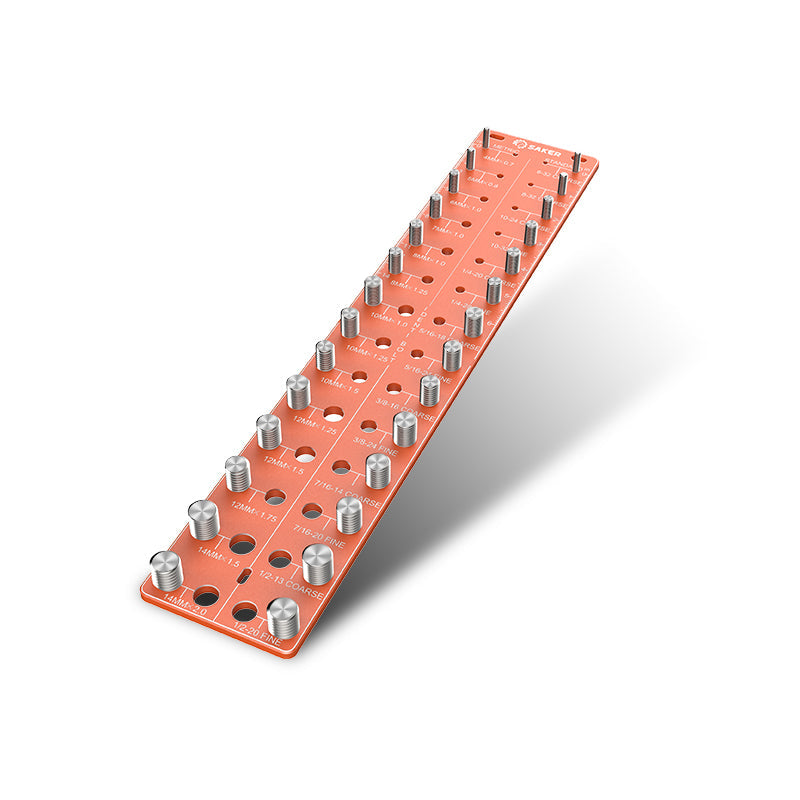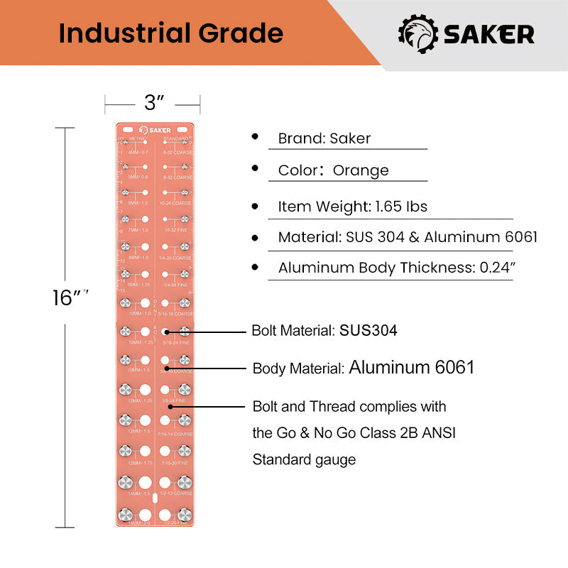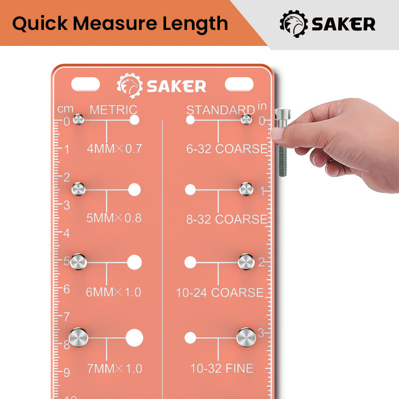 - Patvarios lazerių apdirbtos colinės ir centimetrinės skalės leidžia tiksliai ir greitai nustatyti įvairių sriegių dydžius. Kompaktiškas tikrintuvo dydis leidžia turėtį jį bet kurioje darbo vietoje!