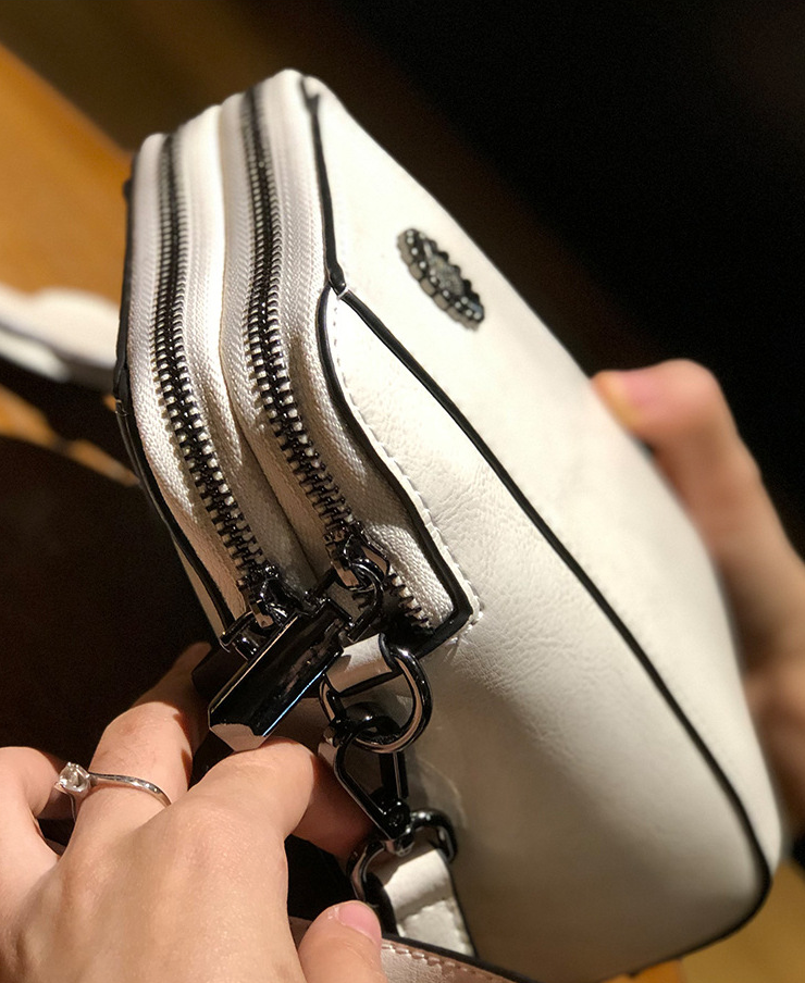 Rankinėje yra daug kišenių ir skyrių, todėl galite patogiai susidėti telefoną, raktus, kosmetiką ir kitus smulkius daiktus.