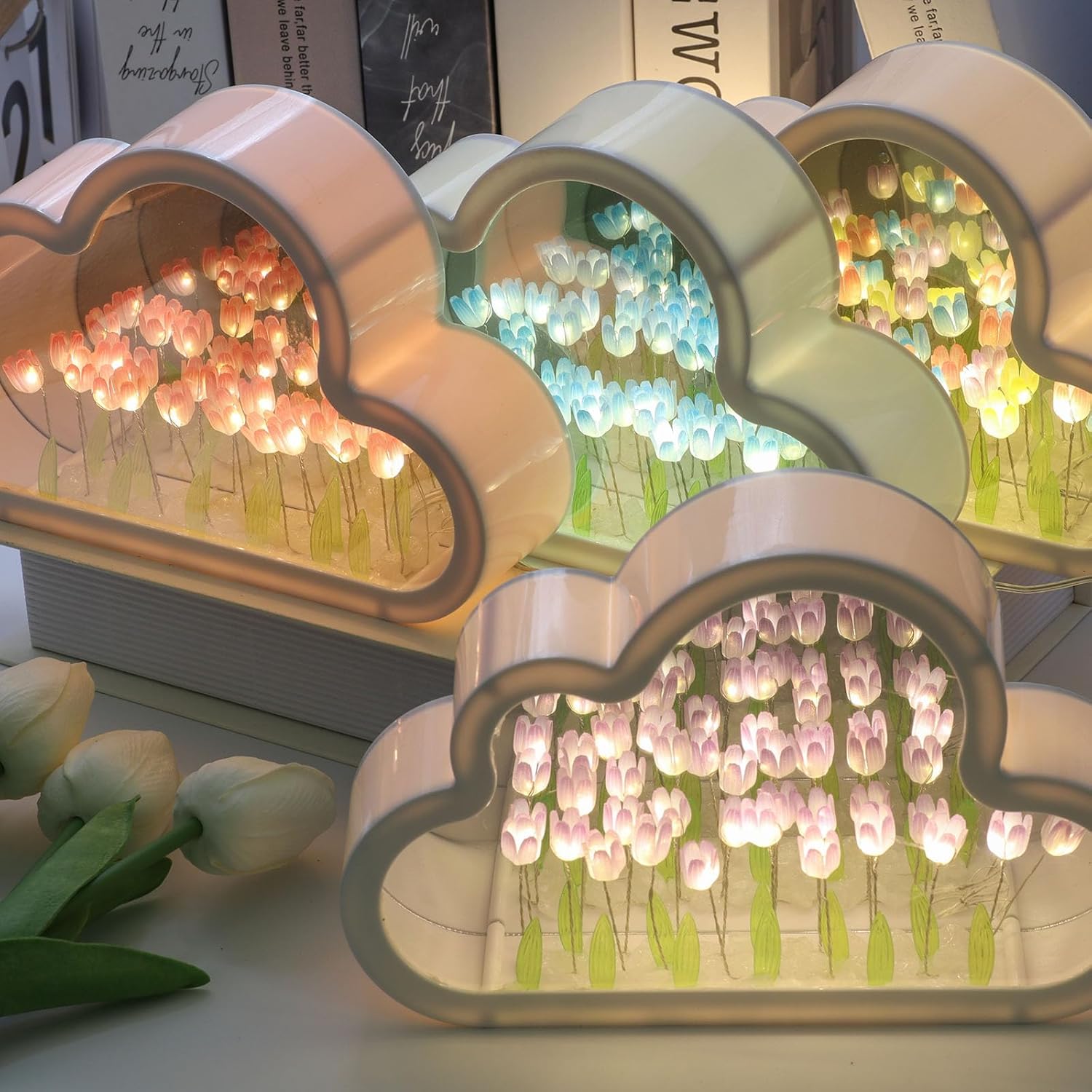 - Ypatingo grožio dekoracija, kurios vidus yra pripildytas dirbtinių tulpių! Tulpės yra apšviestos LED šviesa. Veidrodinis efektas leidžia matyti begalės tulpių viduje! Dekoracija puikiai apšviečia kambarį nakties metu.
