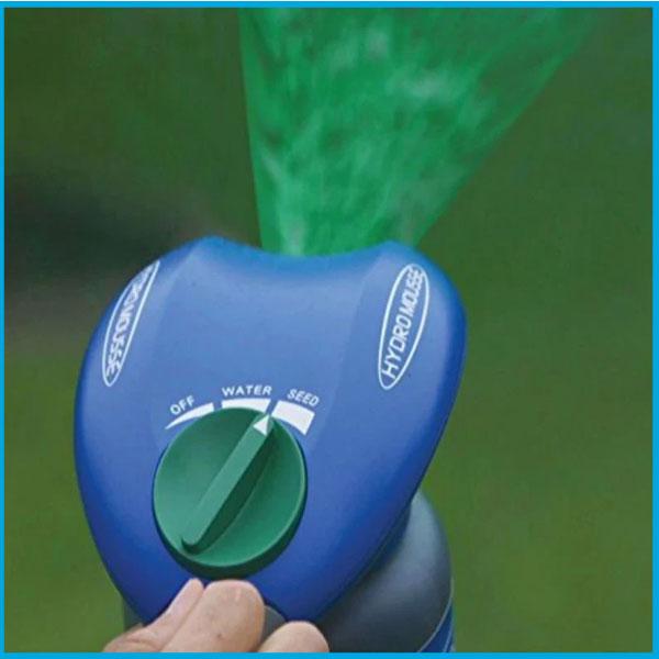 - Purkštuvas purškia, net 3 skirtingomis srovėmis. Vienu metu galite sėti sėklas ir purkšti priemonę. Prieš pradedant purkšti įdėkite į talpą žolės sėklų ir įpilkite apie 5 ml priemonės. Prijunkite purkštuvą prie sodo žarnos ir tolygiai išpurkškite visą veją. Talpos viduje esantis priemonė, sėklos ir vanduo yra sumaišomos tarpusavyje.