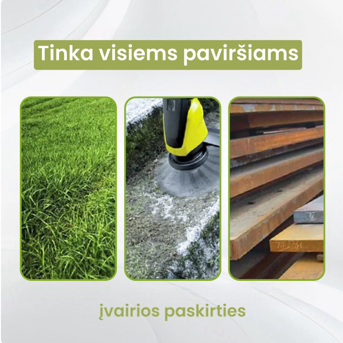 Tvirta plieno konstrukcija 🛠️ – užtikrina ilgaamžiškumą ir efektyvumą. net ir susiduriant su storomis piktžolėmis ar sunkiai įveikiamu žolės sluoksniu.