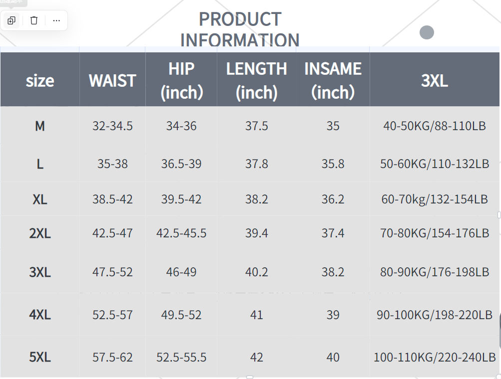 | 2XL | 108-119 | 108-116 | 100 | 70-80 kg |