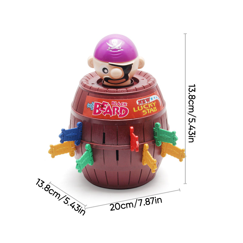 - Unikalus ir intriguojantis žaidimas, kurio metu turėsite duotus kardus įsmeigti į statinę ir stebėti kada piratas pakils į viršų! Turite apgalvoti ir smeigti kardus ten, kur nėra pirato. Žaidimą pralaimi tas, kuris paliečia kardu statinės viduje esantį piratą. Žaidimas rekomenduojamas nuo 4 metų amžiaus vaikams. Žaidime gali dalyvauti iki 4 žaidėjų.