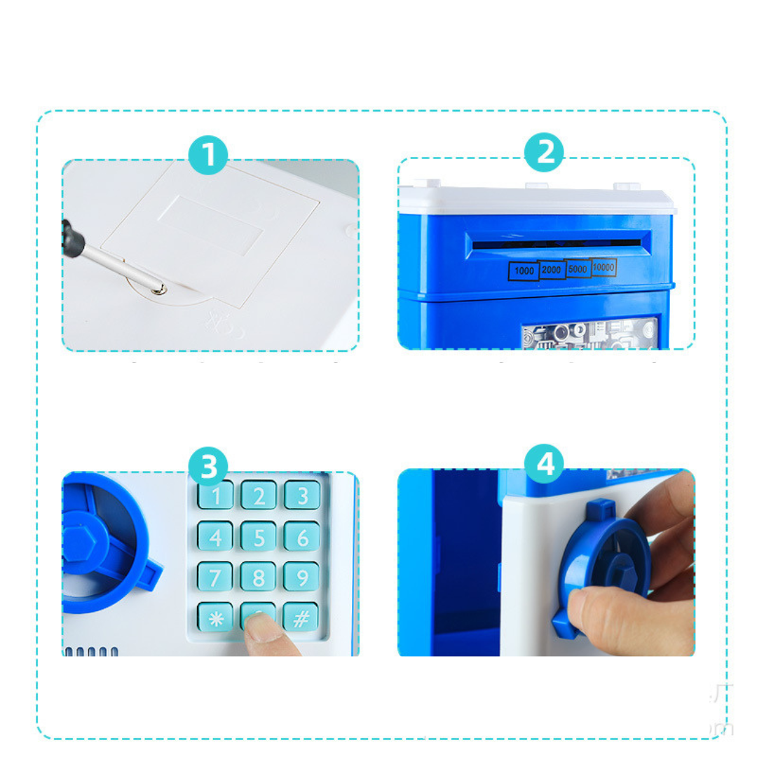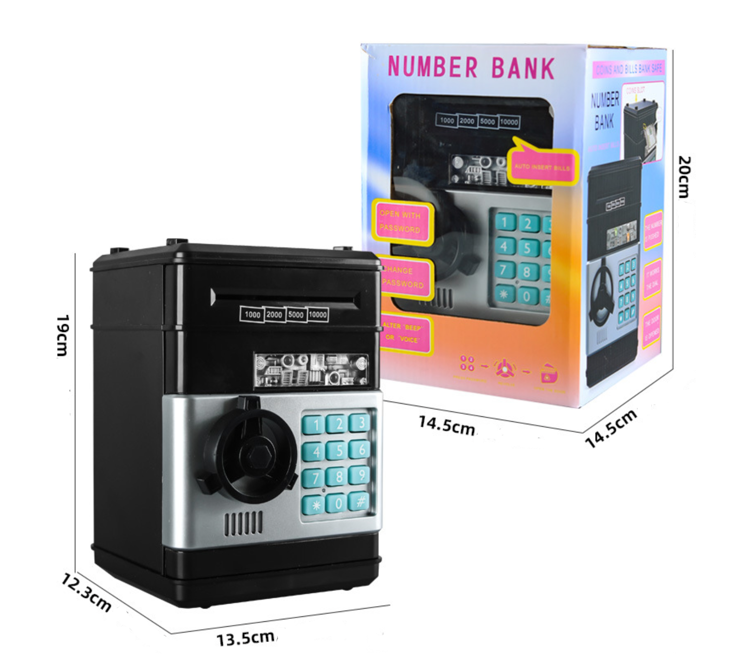 Šis interaktyvus taupyklė-seifas - ne tik vaikų žaislas, bet ir praktiška finansų valdymo priemonė. Su asmeniniu slaptažodžiu ir balso atpažinimo funkcija, jis padeda vaikams mokytis taupyti pinigus, nustatyti taupymo tikslus ir planuoti savo finansus. Be to, jis gali būti naudojamas saugoti žaislus ar papuošalus.