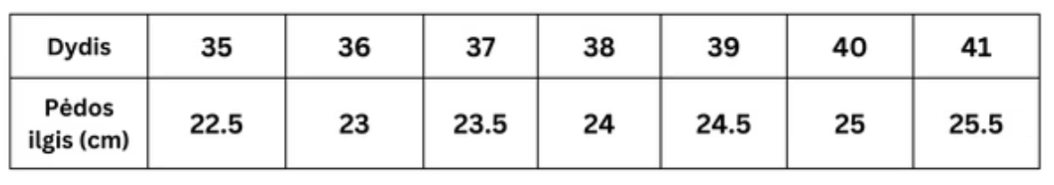 Priežiūros rekomendacijos: rekomenduojame naudoti švelnias valymo priemones, kad išsaugotumėte batų išvaizdą ir kokybę.