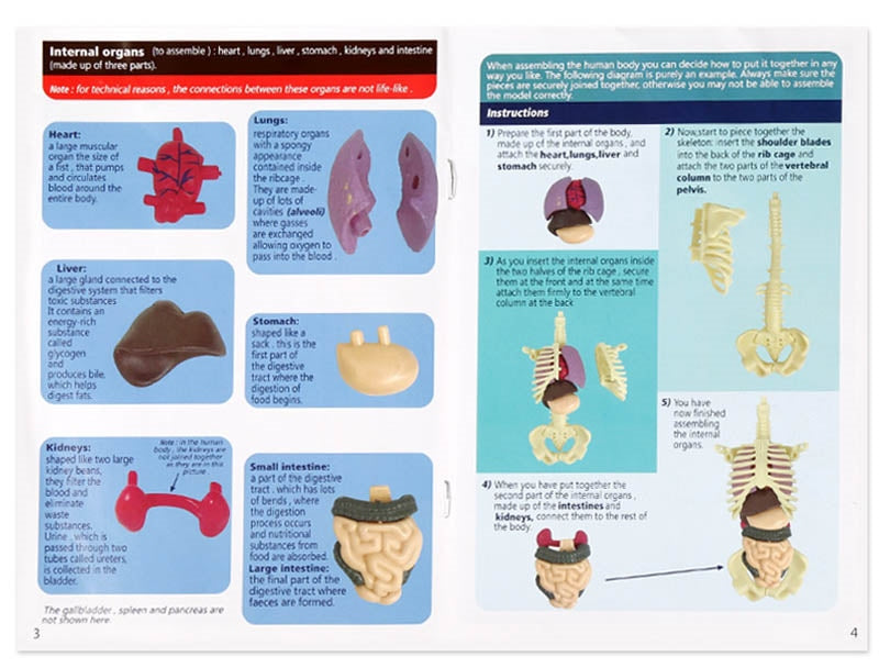 Tai padėti padarys kartu su pasirinktu modeliu pateikta modelio surinkimo instrukcija (anglų kalba) su pagrindine informacija apie žmogaus organus ir kūno dalis.